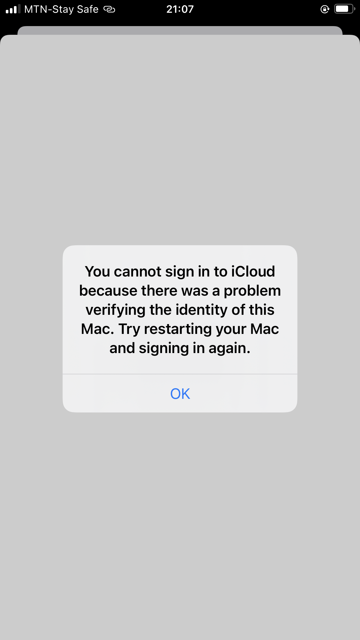 Can't sign in to iCloud because it can't verify the identity of this Mac.