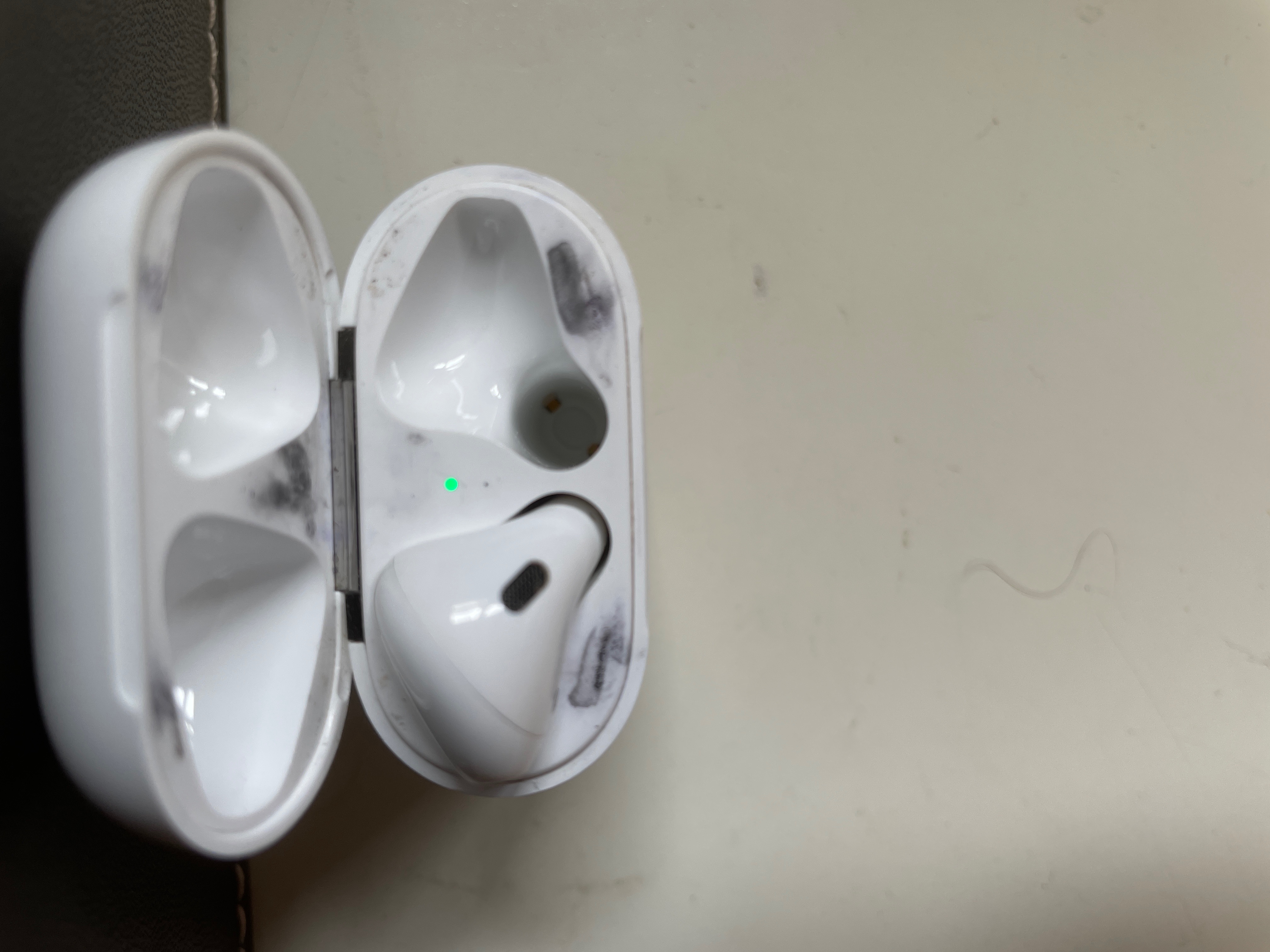 One of my AirPods when placed in the case flashes amber, while the other is normal and is green. I have charged them both equally and I have also done a thorough clean of the end of the airpod and the charging port in and outside the case. The AirPod no longer connects to my phone or other devices but the other one does. The marks in the case in this image are just sharpie as I had to mark it was mine within my family sorry.I have also tried a factory reset multiple times with no prevail. I would appreciate some help.