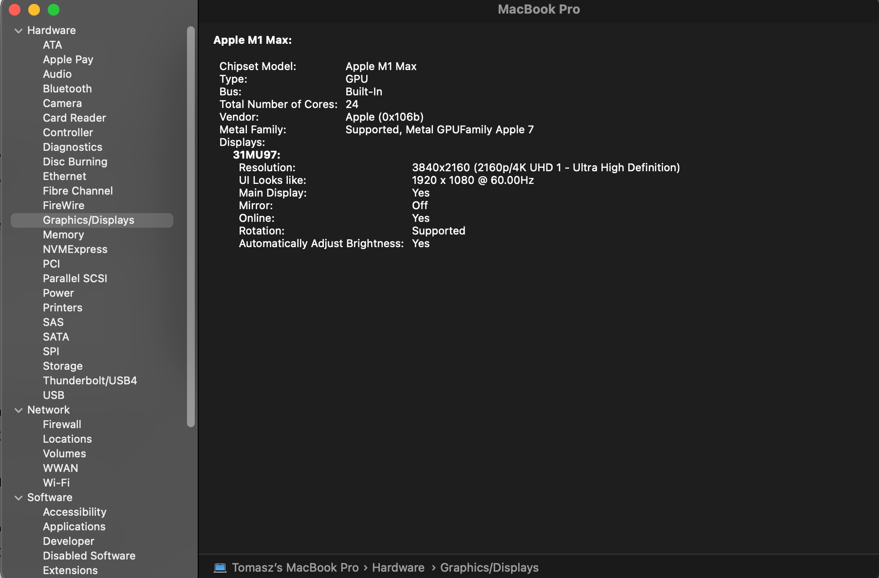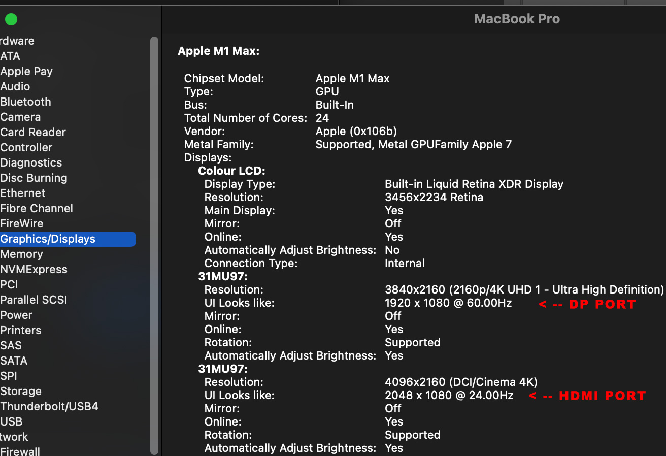 Please tell me if I can get any updates or software that can help me use full capacity of display with my MacBook Pro M1 Max 64GB and 24 cores GPU.