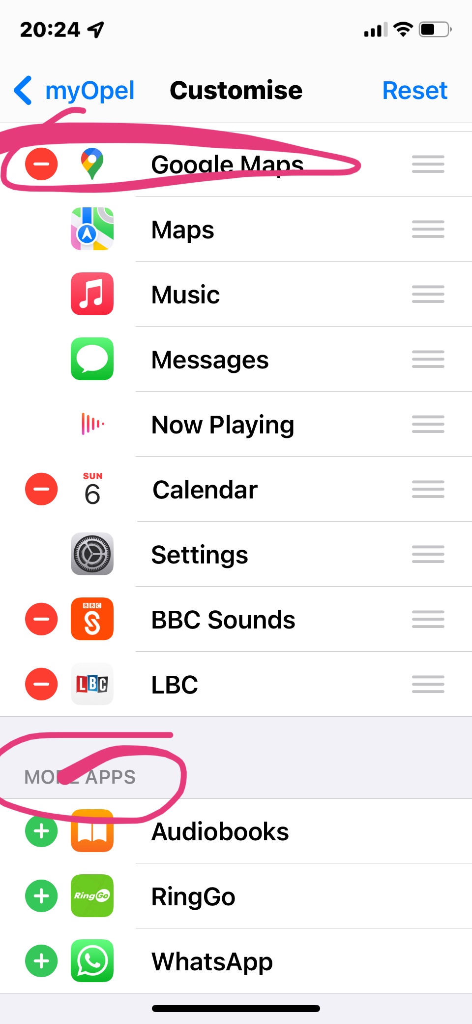 my apple car play will not let me add google maps. I have ios 15.2. it used to be included and suddenly a number of apps have the red sign next to them and I am unable to add them.