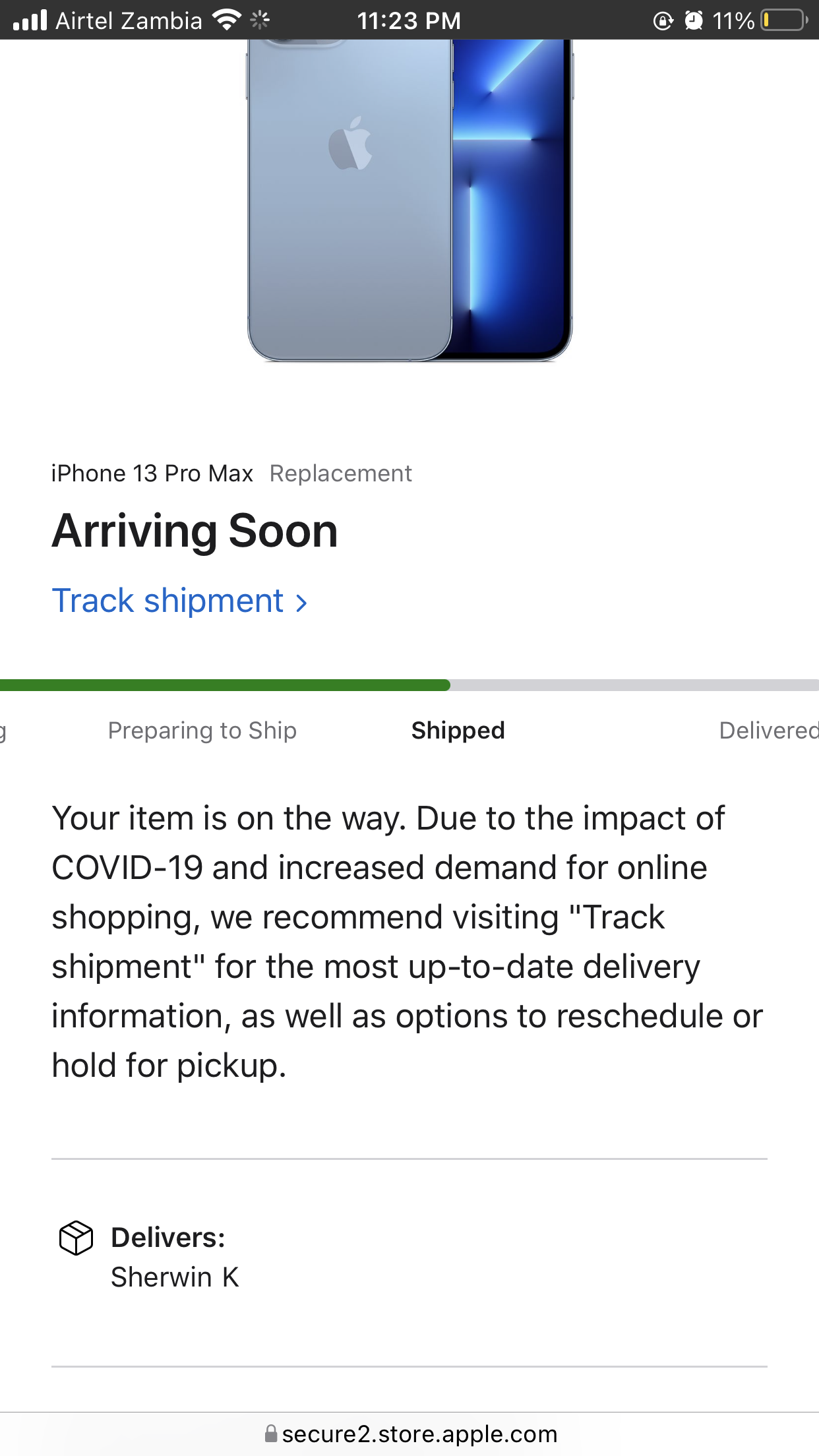 I ordered my iPhone 13 pro max on the 20th of February 2022 from the Apple store app. Today is 7/3722.