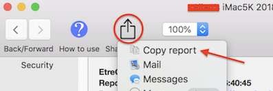 When its report displays, click the "Share Report" icon from EtreCheck’s toolbar and then "Copy report” from the resulting dropdown.