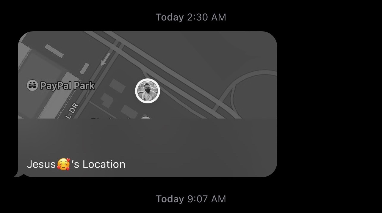 My wife received this last night while I was sleeping. She somehow got sent my location all greyed out. However, I was at home. Is this a glitch ?