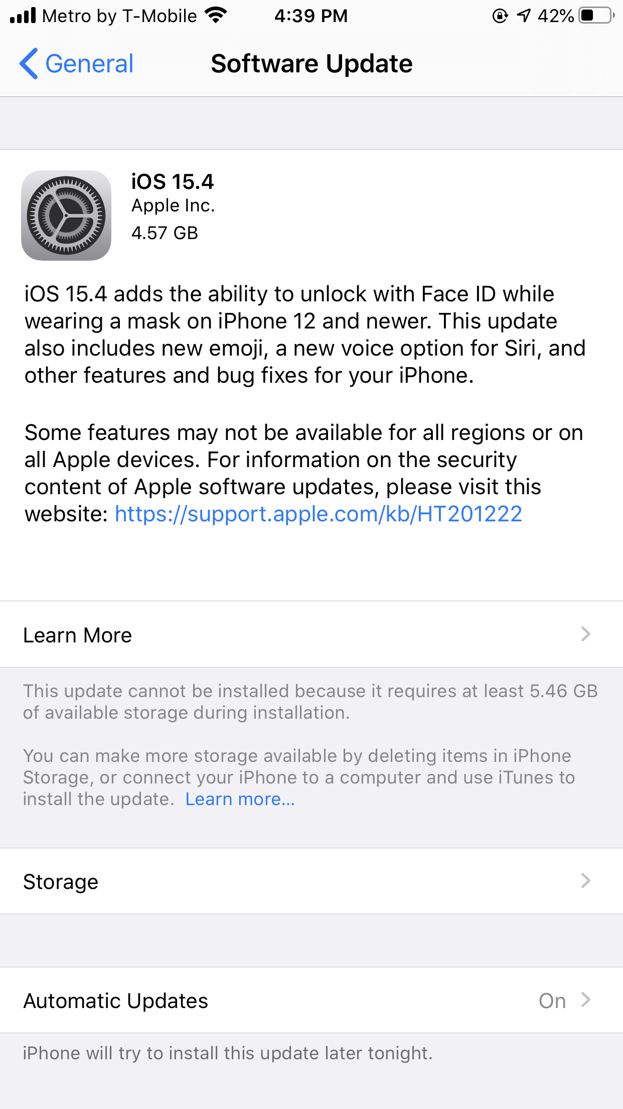 You need to delete something so that you have enough free space for the update. You can also try updating through your computer.