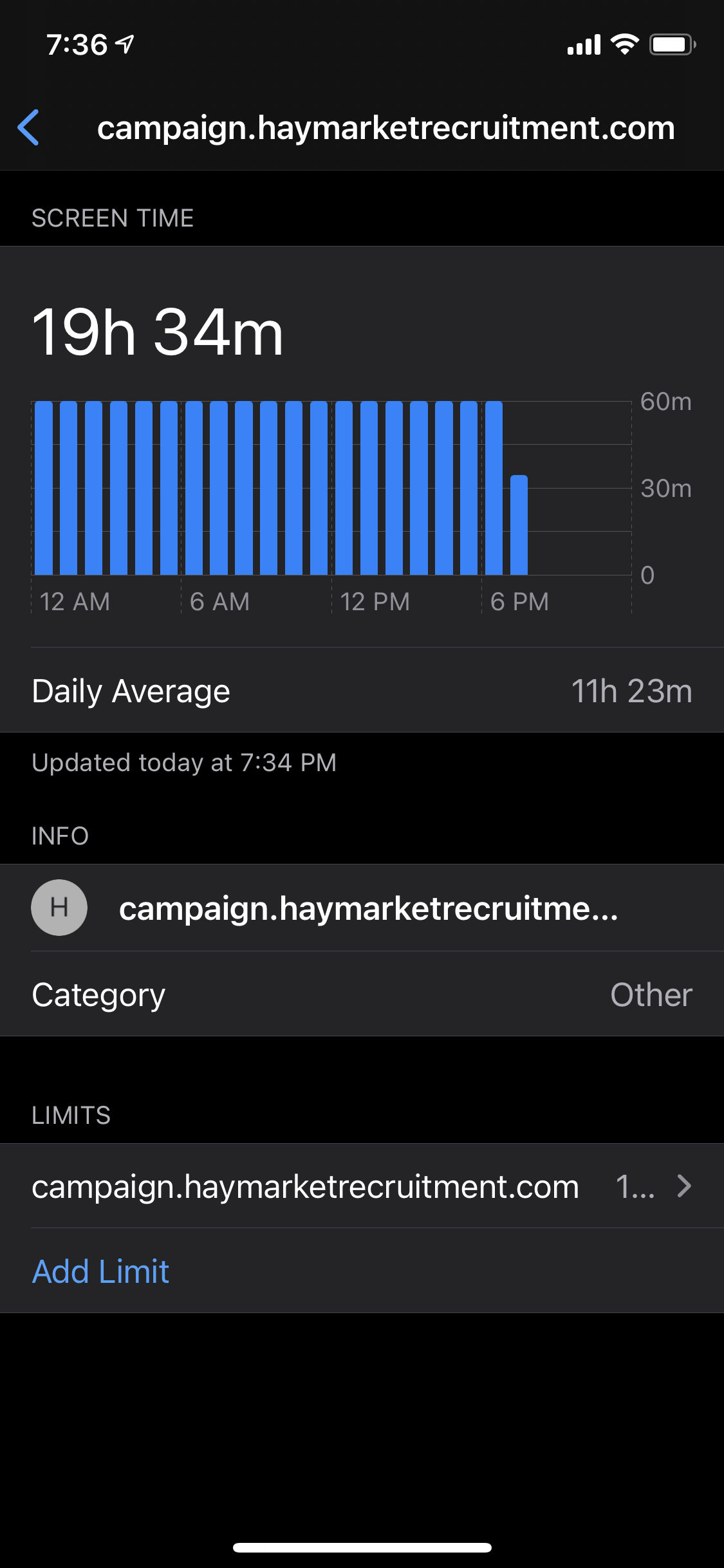 my concern is that it’s tracking my activity 24/7. I’ve since set a 1 minute daily limit to it. Does anybody have any ideas?
