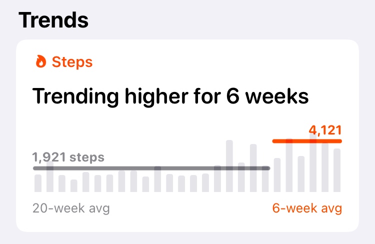 I’ve been stunned to see that I’m rocking my step count without even trying. And oddly, it’s from 8-10 pm when I’m watching tv and crocheting.
