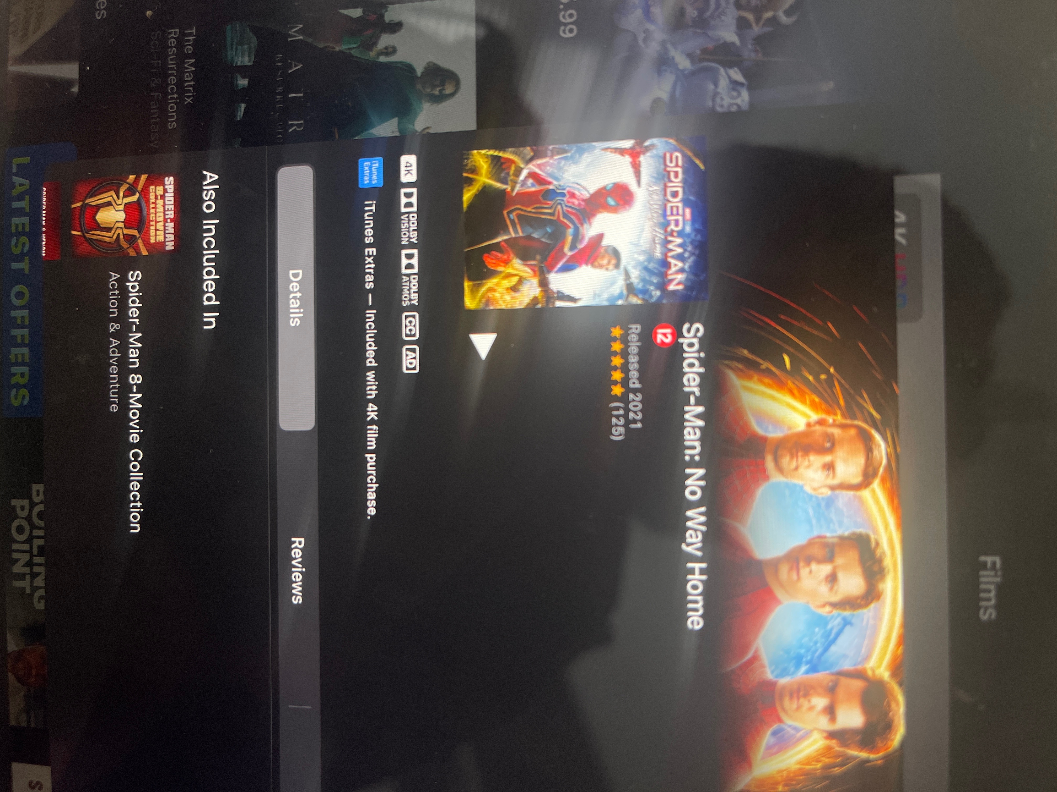 Select a movie to see its description page. If a movie has iTunes Extras, you'll see an iTunes Extras badge.