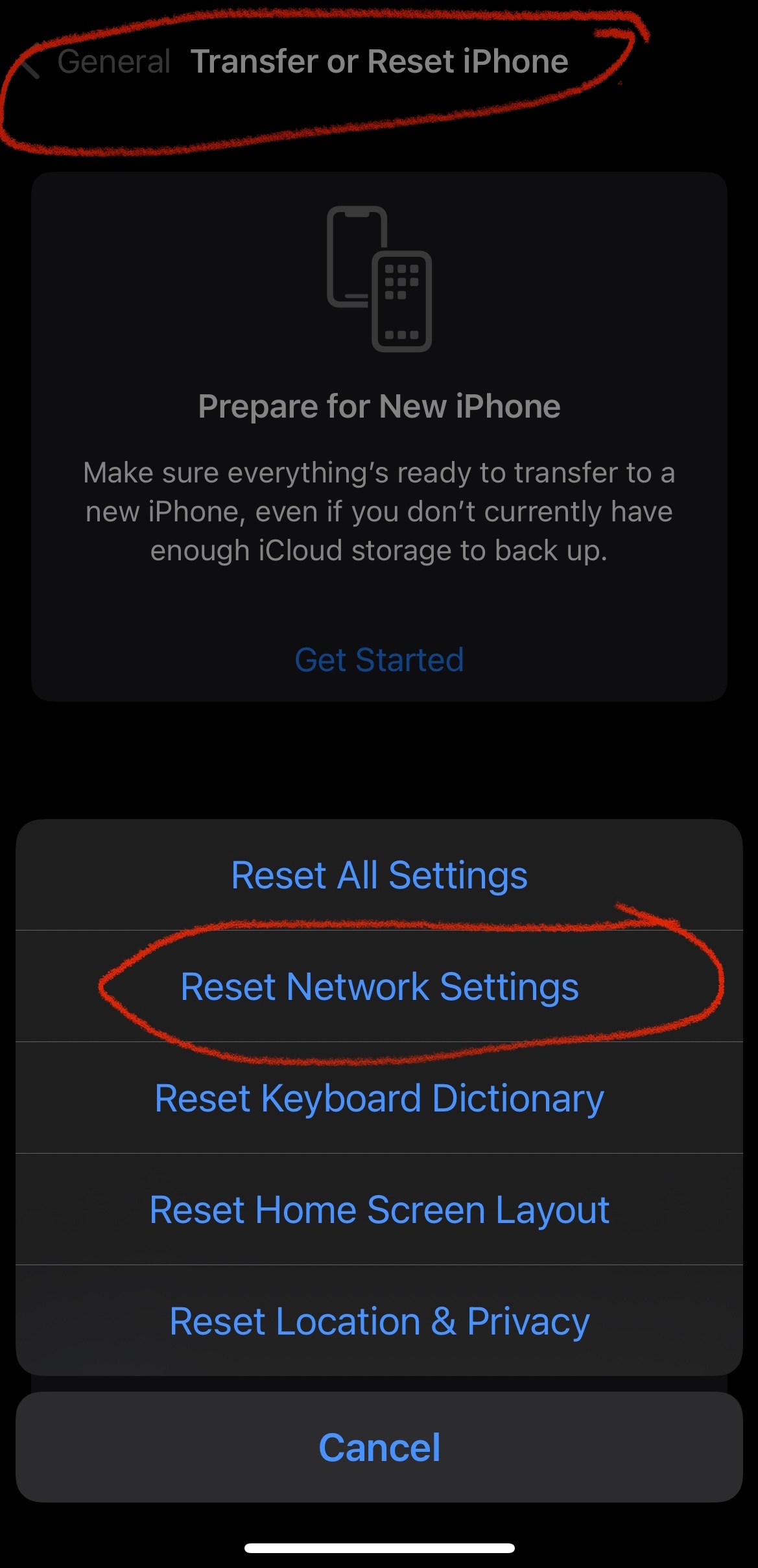 Please note that by resetting the Network Settings, you will have to re-establish your Wifi connection.