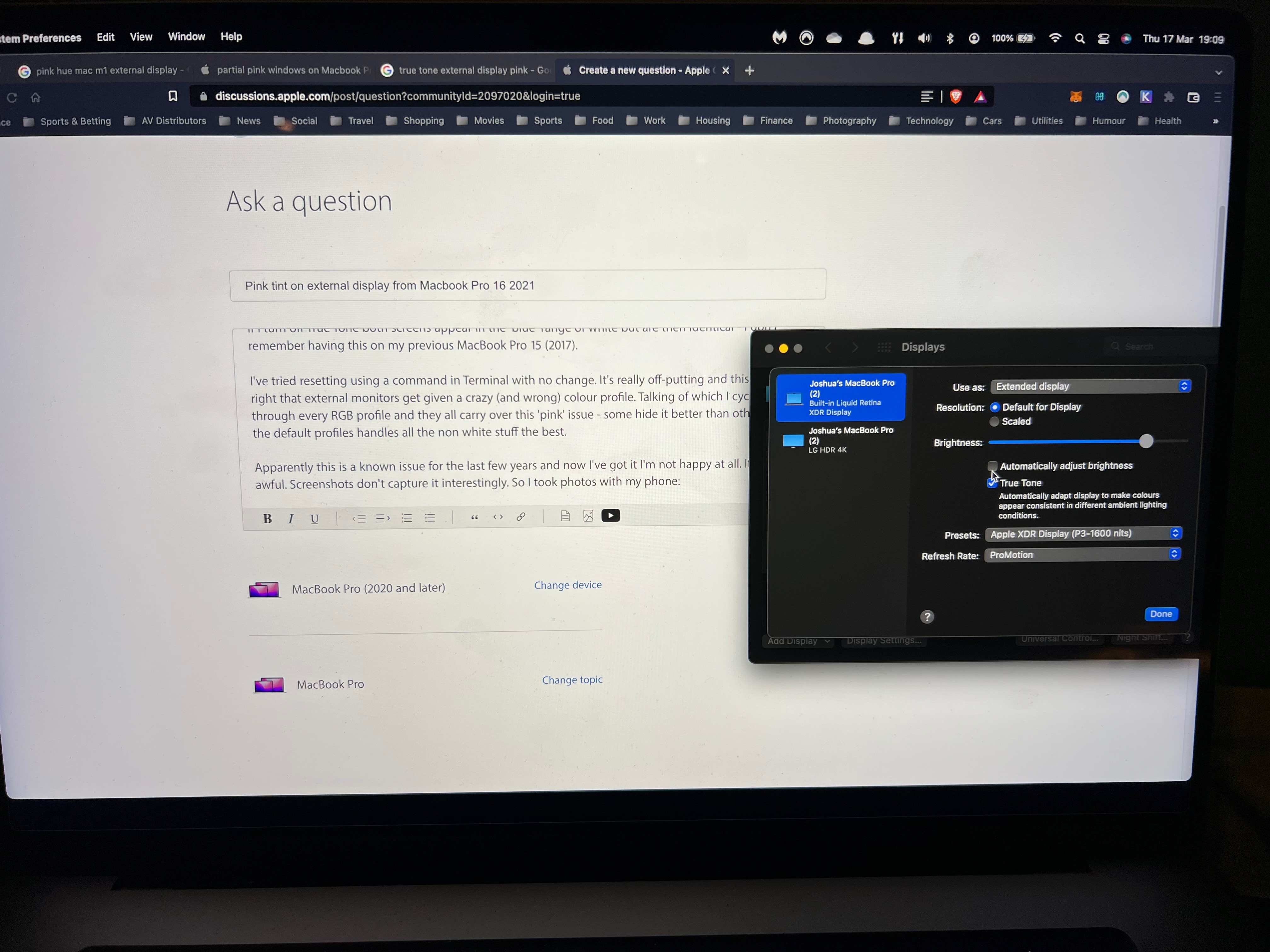 Pink tint from 2021 MacBook Pro 16 M1 on external display (via USB-C)