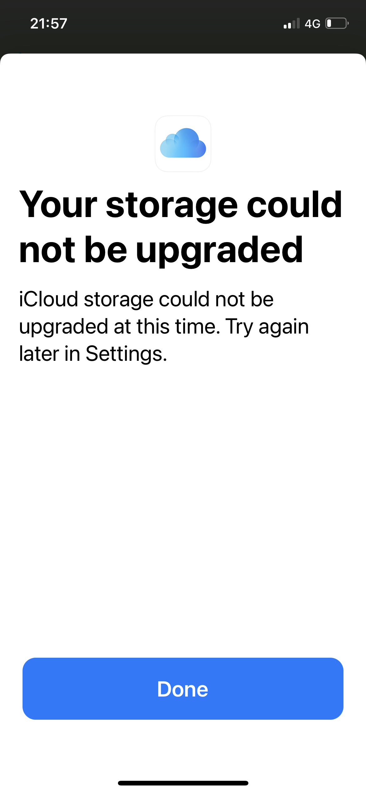 I am not able to upgrade my iCloud. It gives me an error when I try and tells me to try again later