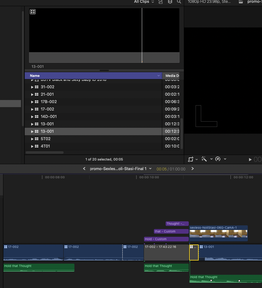 Here's an image sample. Here's also an old link that I found where I happened to be dealing with this issue years ago. There seems to be others as well, but no solution inside FCP. I am not looking to tamper with an XML file; particularly if I have Motion generators in my project which XML can't fully rebuild.