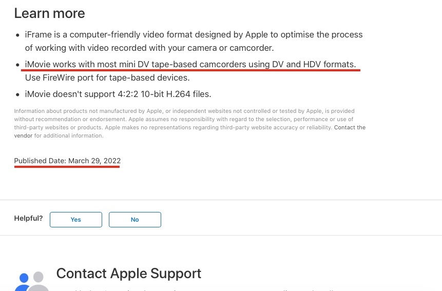 Prior to updating to 12.3 I was able to connect my Panasonic Mini-DV video camera with a DV --> Firewire and then firewire to thunderbolt to usb c adapters and import video from tapes into iMovie. Since updating to 12.3 iMovie no longer will recognize the camera as a device when going to import. I spent about two hours troubleshooting this with Applecare support with no solution. It appears the update has made it non-usable in this sense. I'm thinking an update to iMovie needs to be done to make this work again perhaps? At any rate, if anyone has experienced this and has a fix I'd love to hear it! Using a 2020 Macbook Air.