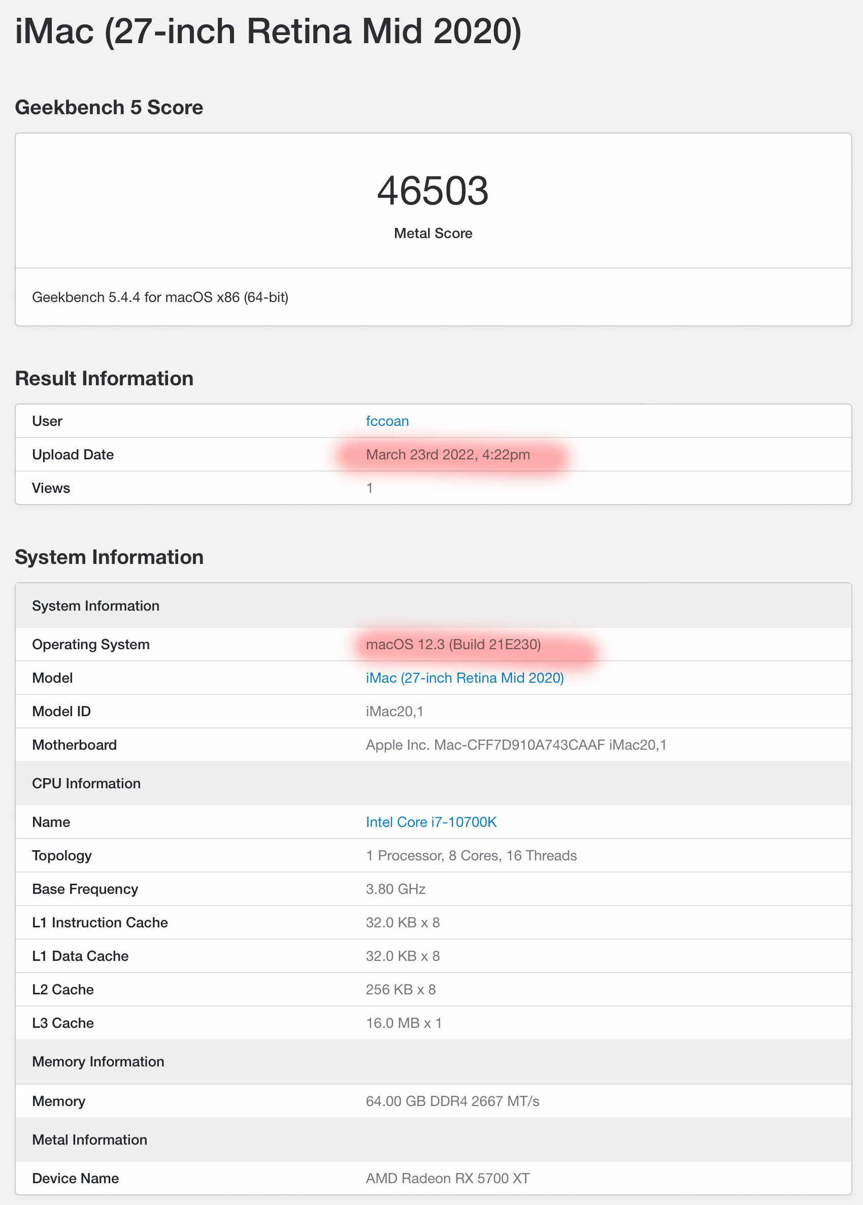 I test my GPU performance like other with Geekbench 5 occasionally and it is recorded in my Geekbench Profile.