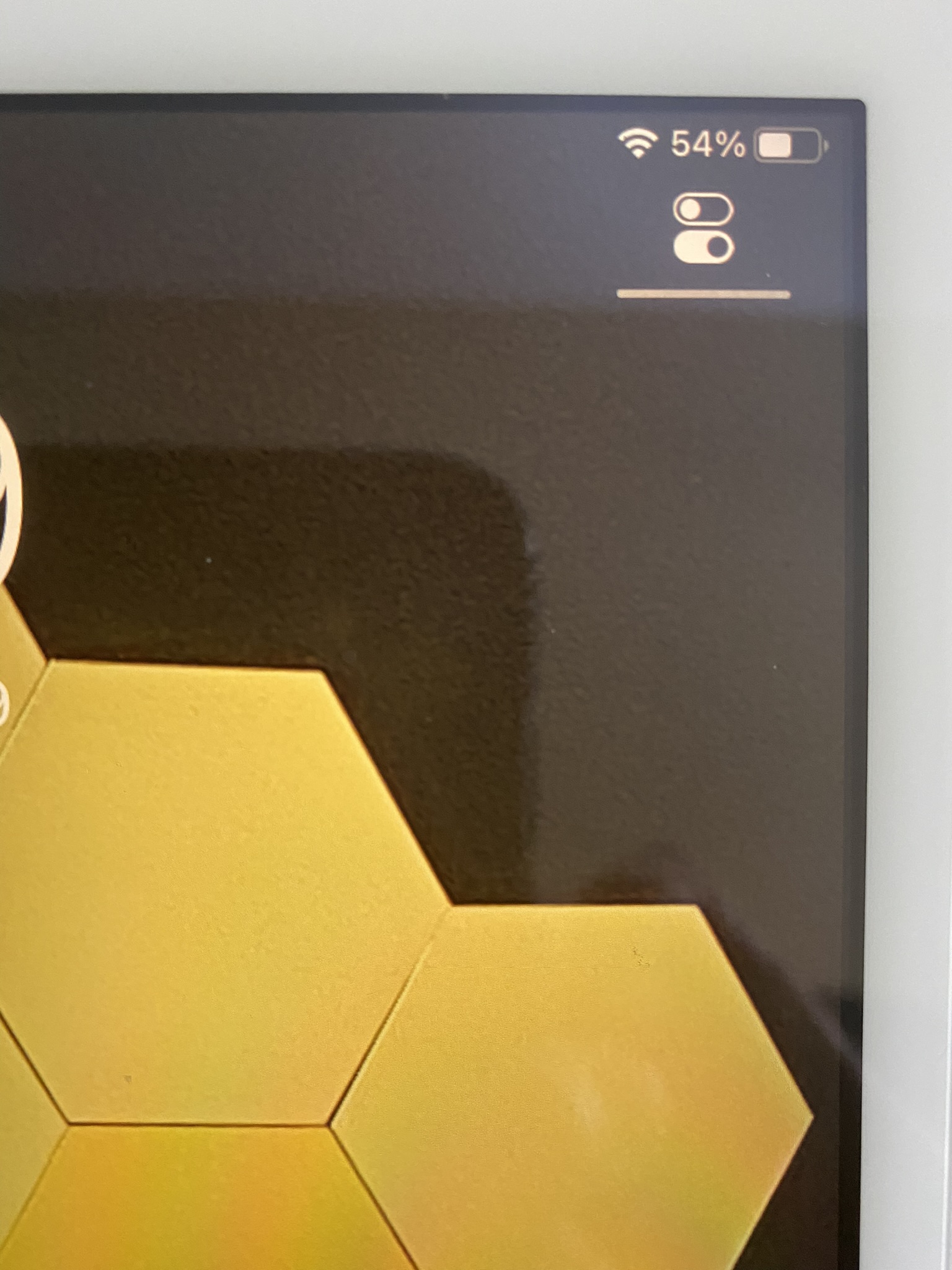 The switch icons and the bar below form a hint of where to pull down for the Control Center (at the upper right corner).