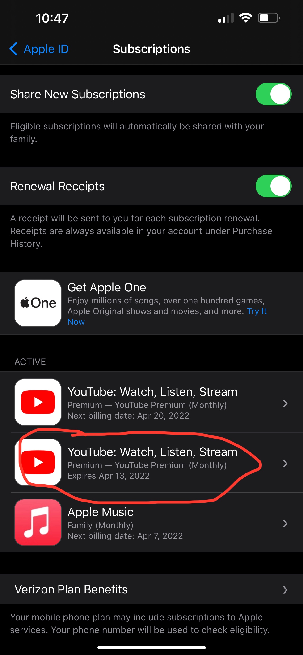 Hi, I need to cancel one of my subscriptions and get my money back for it, YouTube premium, which ends on the 13th