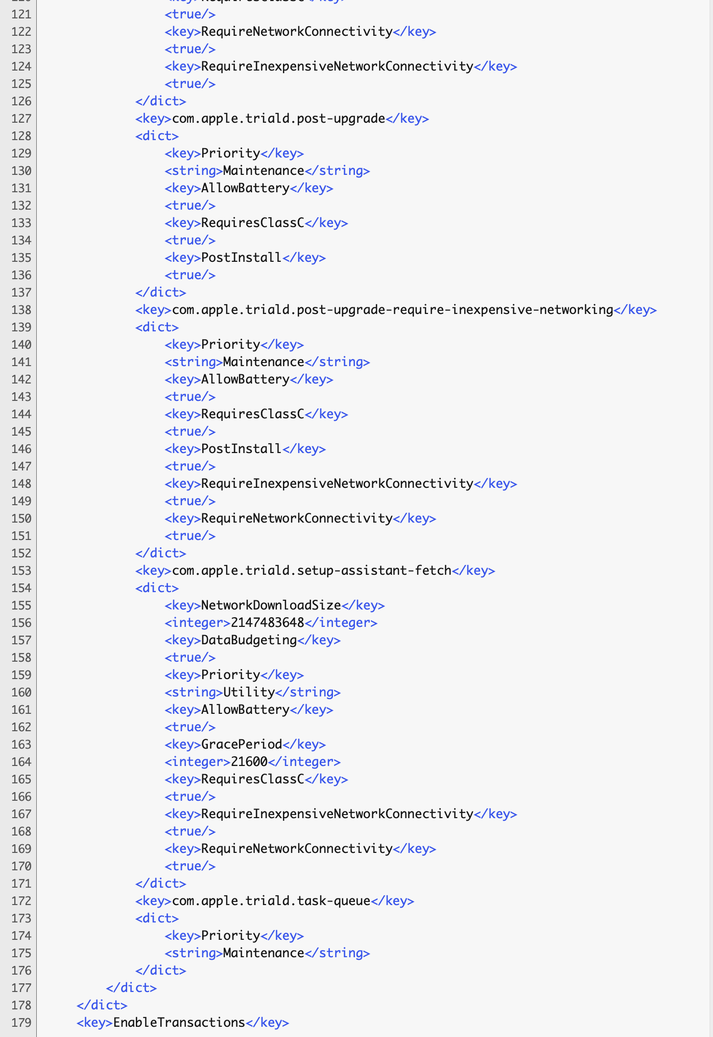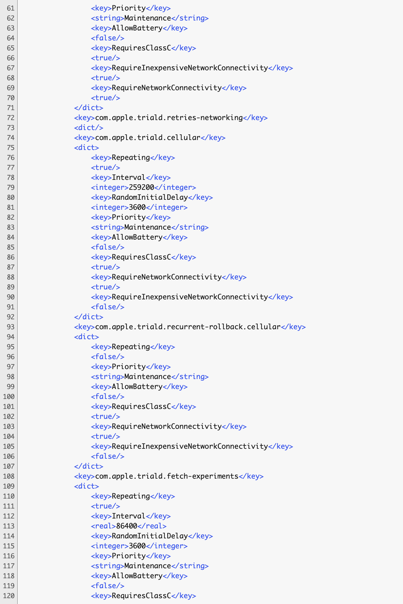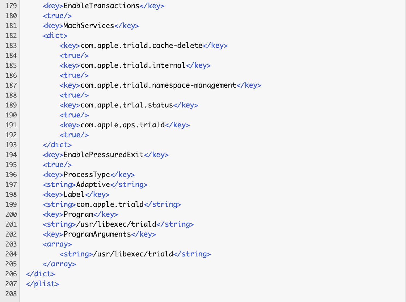 I've not been able to find any info on this daemon process. On my 2019 MacBook Pro with Monterey 12.3, triald pegs in with the eighth highest overall CPU usage. And then there's the files. In my user library, the folder "trial" contains over 173 THOUSAND files/items. And because of disk allocation, the 62 MB of these data take up 666.7 MB of disk space.