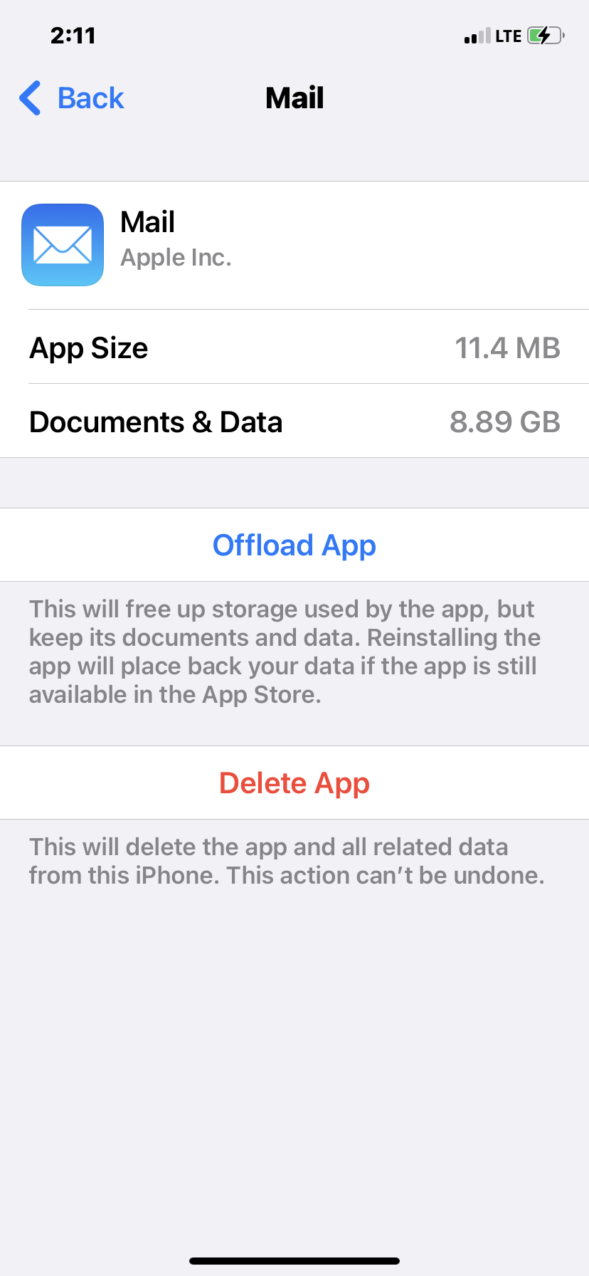 when i checked storage in setting it is showing around 15 gb used by apple mail app. So i deleted the app as its way too much for an app. But even after deleting this mail app storage still shows same amount used.