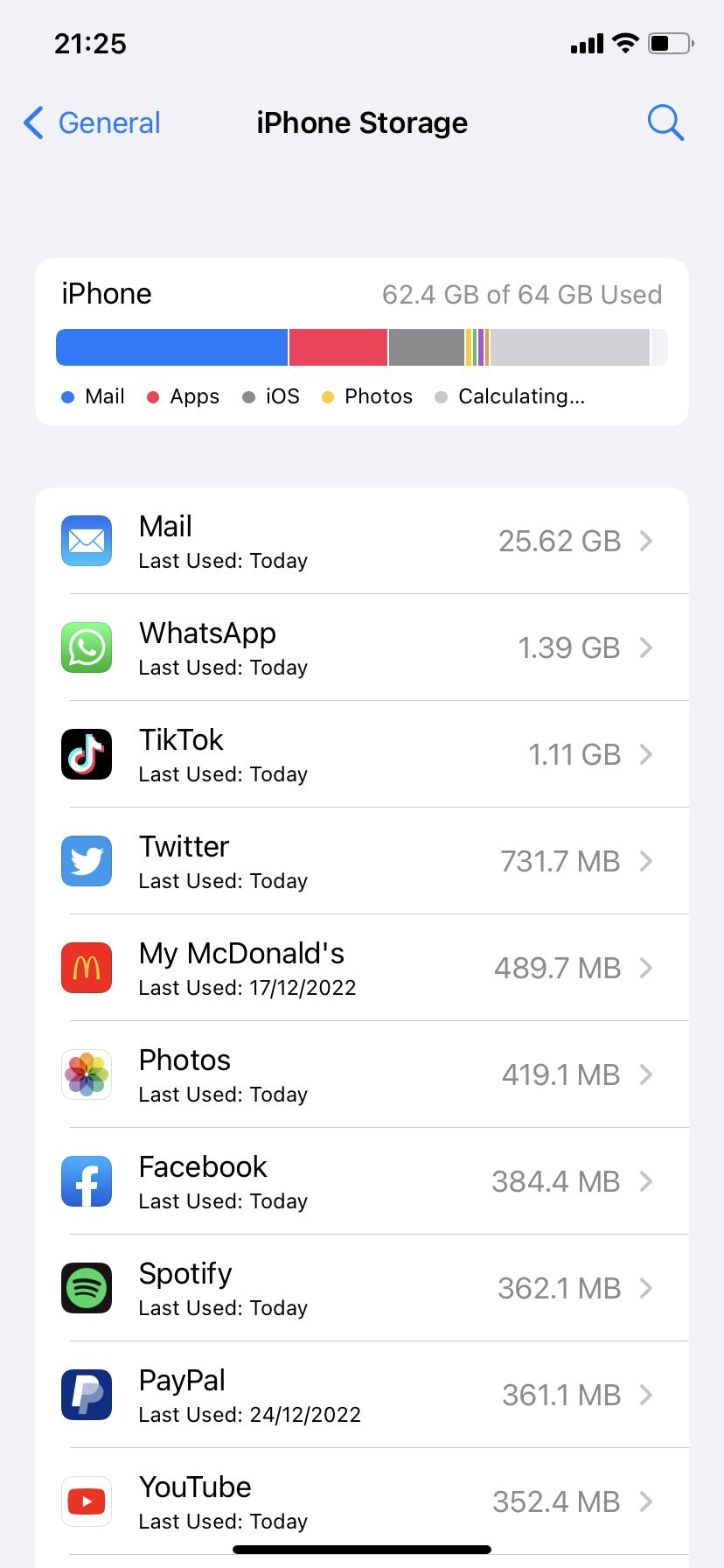 Storage used up even after deleting apple mail app