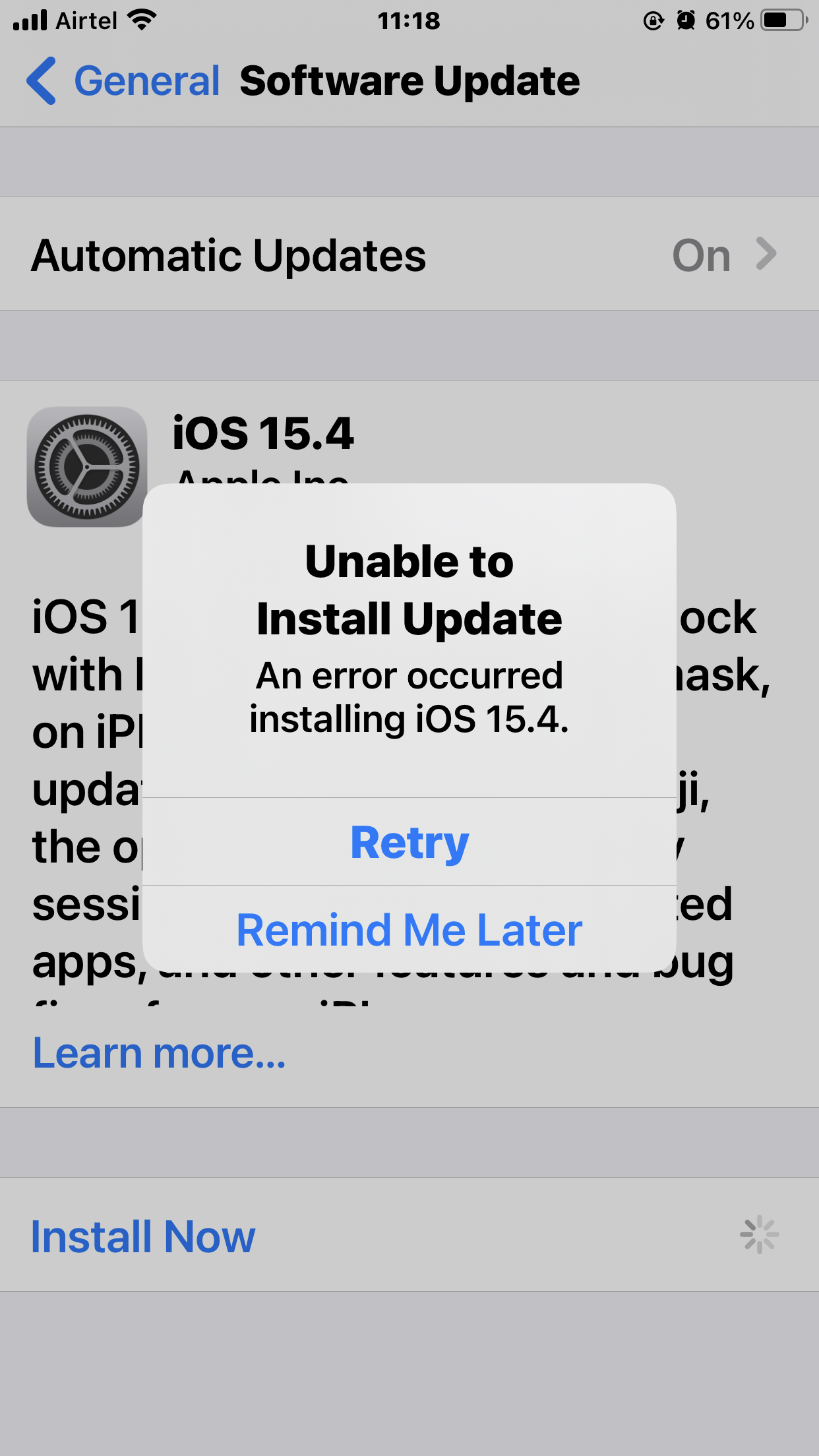 Not able to update software