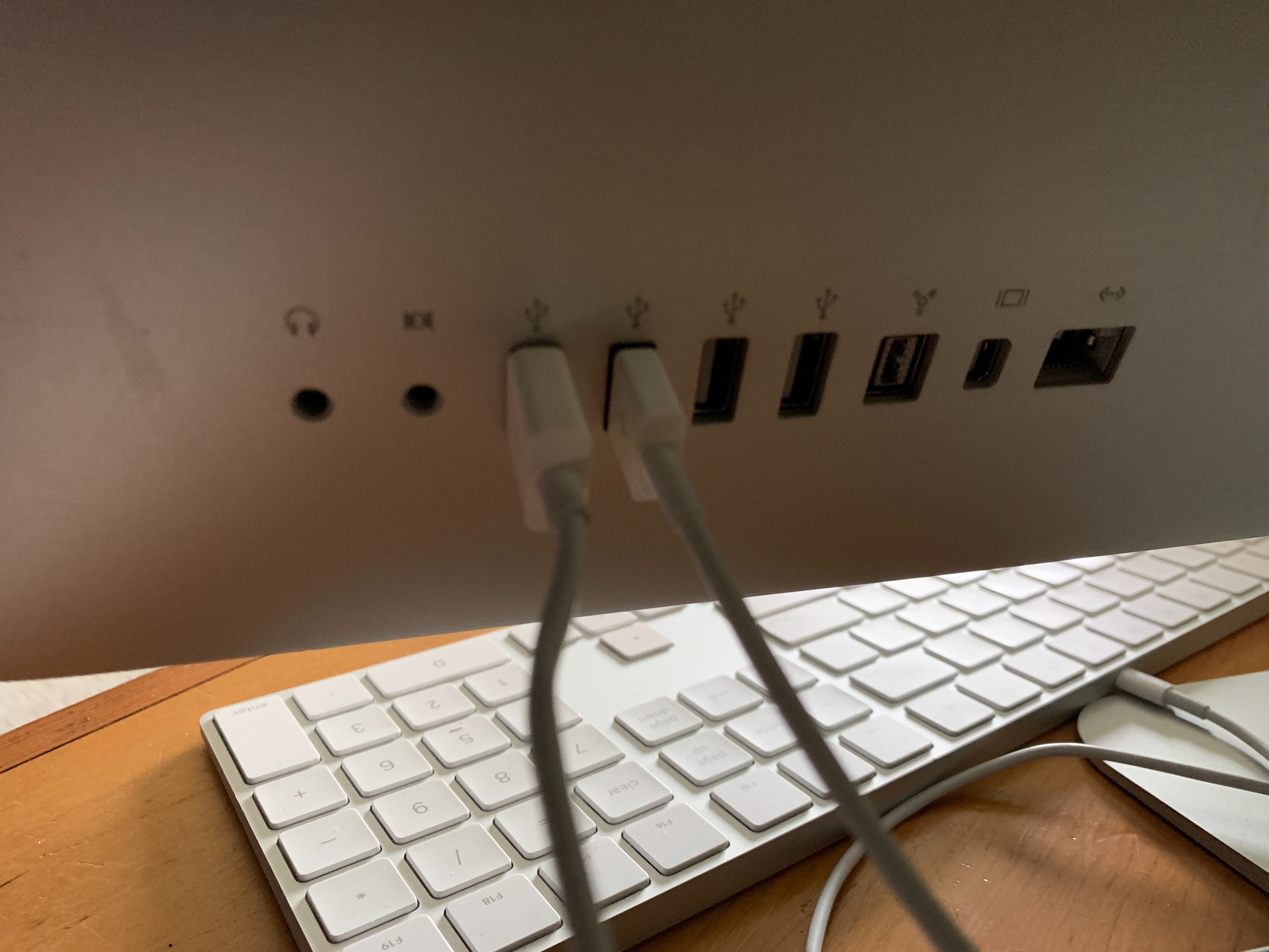 The 2009 iMac does not have a thunderbolt port. I've attached a photo below of the ports I do have.