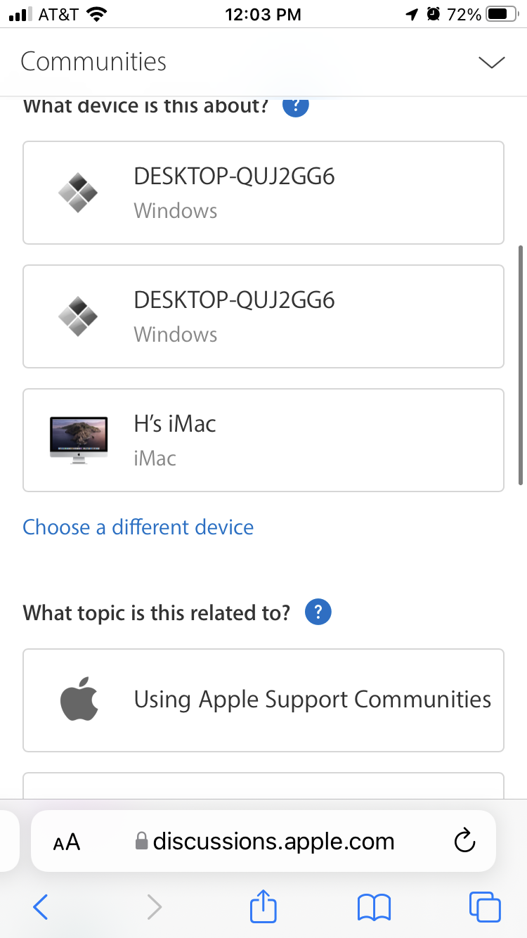 Whenever I ask a question on this website I am supposed to Select what device is this about from a list. All that ever shows up in that list is some windows PCs and a iMac I once set up on a virtual machine. Even though I am currently using my iPhone it never shows up on that list and I have to click a whole bunch of links to select it from a list of models manually WTF