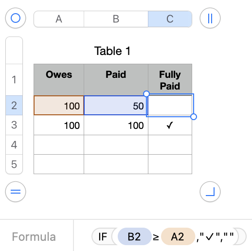 Cell C1 is simply a checkbox to show those who have fully paid.