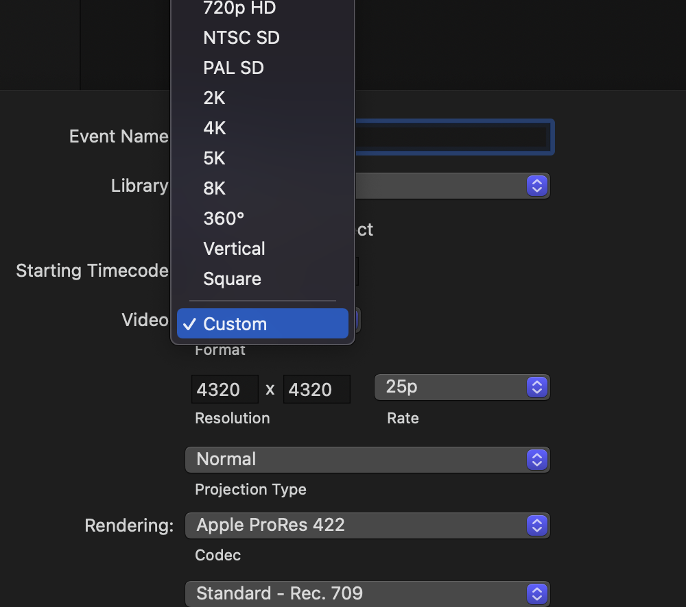 When I choose square I only get 720x720 or 1080x1080. I would like to be able to make 2160x2160 and 4320x4320). How can I do this? It is OK for me to work in 4K or 8K and then somehow crop and export later but how do I do that to end up with a perfect square mp4?