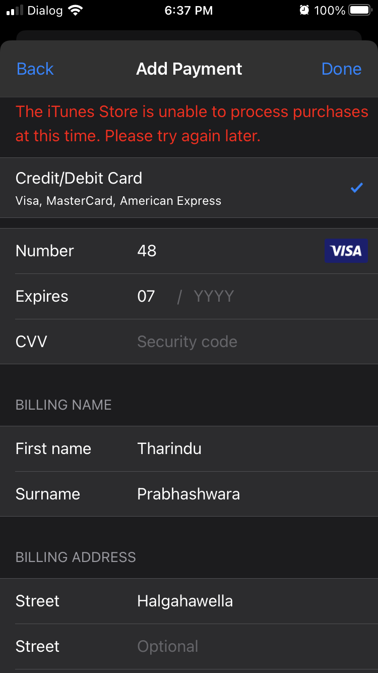 "Add payment method: i can’t add my visa card. My card working another websites. Ex:- aliexpress.. How can I fix It.?: I tried connected to apple support.but i can't fined my case ID or repair ID"
