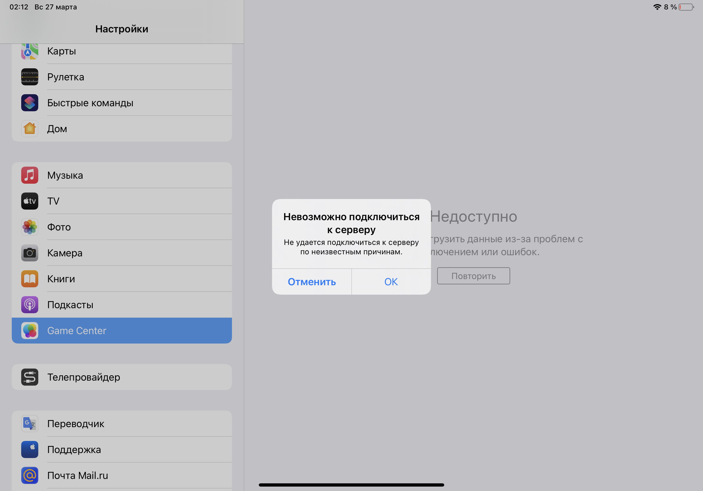 After I updated my iPad Pro 2018, cannot use Game Center anymore. Cannot even connect to the page showing Game Center in settings.