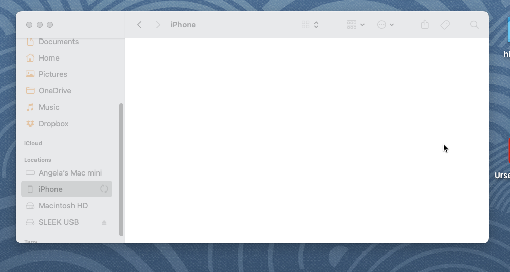 Bad news: Now the spinning circle next to the iphone icon in the Finder window won't stop spinning -- even if the phone is not plugged in. And the iPhone's Finder window (that is, when I click on the Mac's Finder window icon) is completely blank.