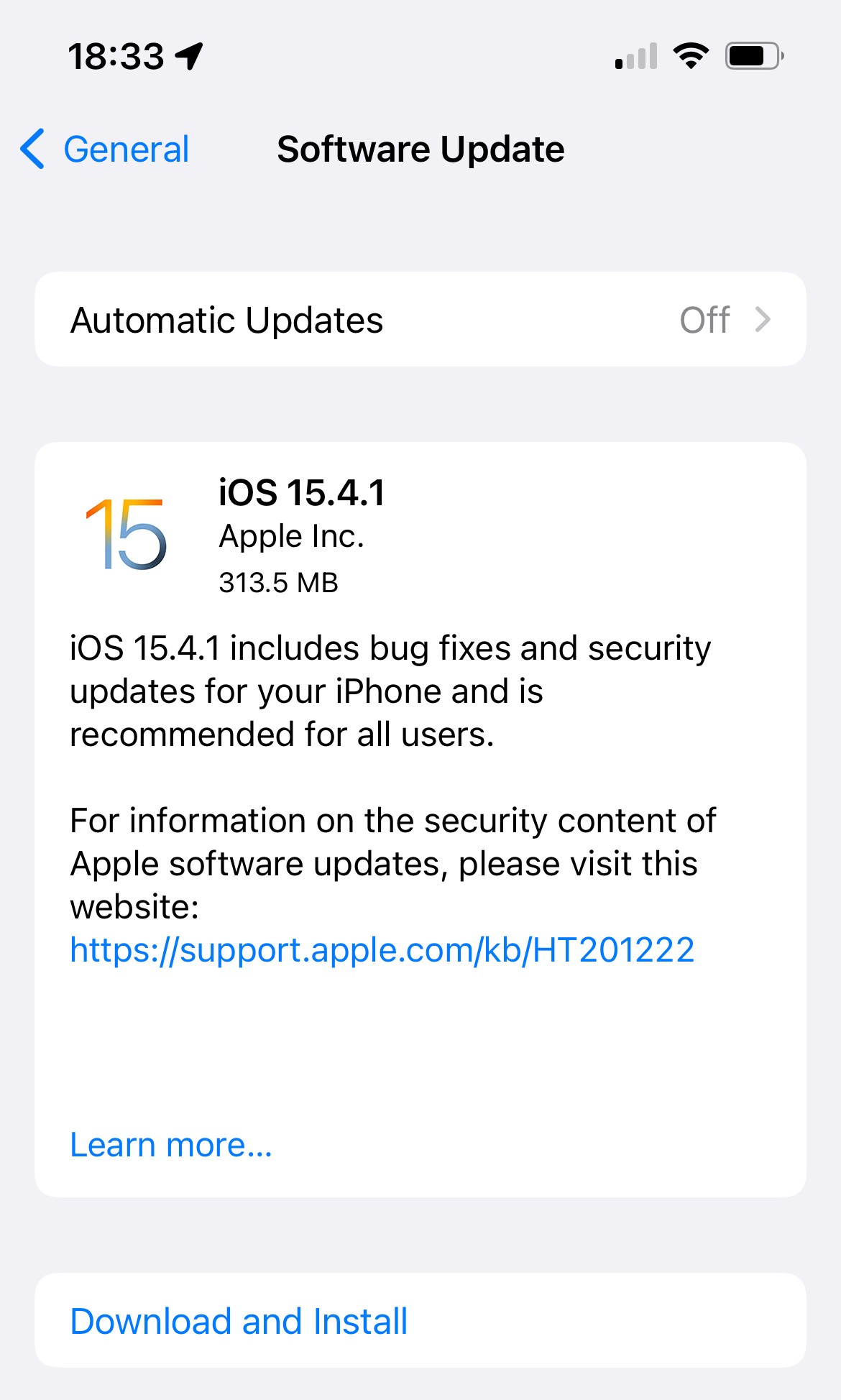 Here is what showed on my iPhone 13 Pro. However understand that you will generally need more than twice that to allow the update to be unpacked from the file.