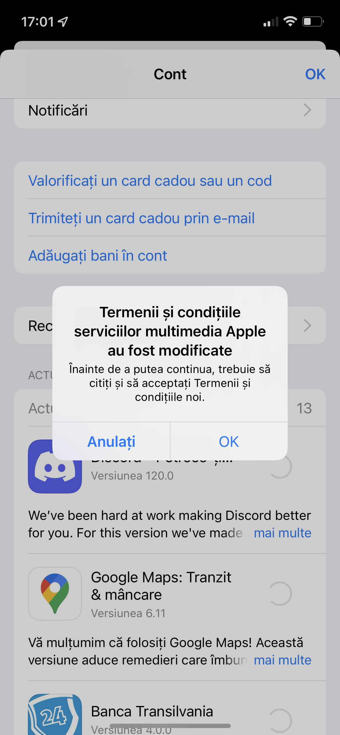 Hi there, Alin129! I understand you're unable to update your apps because you need to agree to the terms and conditions in iTunes and I would like to help with that! Unfortunately I'm not bilingual like you are so I'm not able to read the language that your phone is set to, but I think that one of these steps could be helpful to solve your problem.