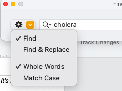I type a word in the "Find" box and nothing happens. It's very frustrating bc I have a long doc, I'd like to make into a book. Any help??