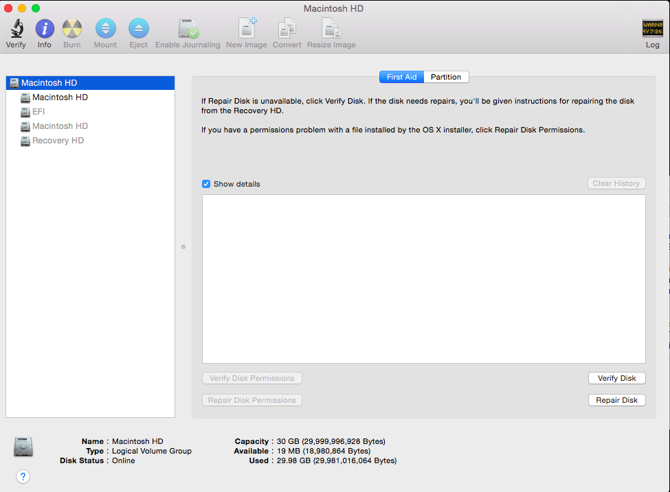 I have an old Macbook Air. Why does HD only allow access to 30 GB when the drive is 121 GB? (See screenshot inside.)