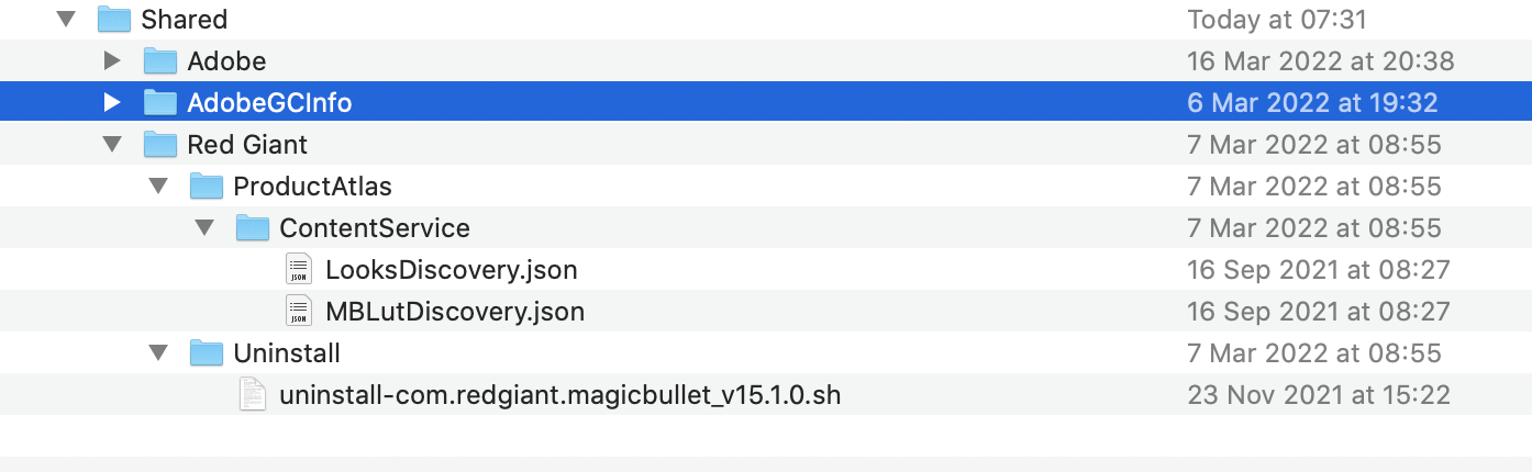 As far as I am aware I have not installed Red Giant apps. But my Users/Shared folder shows a folder called Red Giant. I am presuming it must relate to an app I have installed, but cannot understand why it has been created? anyone know.