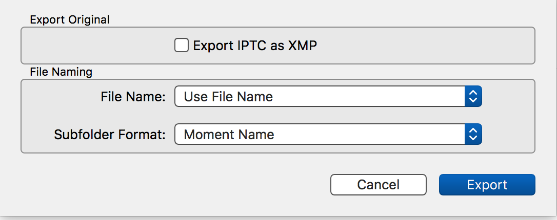 Once you've gotten all of the photos exported into folder names for either Events or Moments you can import them into whatever app you intend to use.