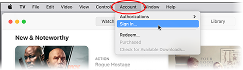 Open the TV app (on macOS Catalina 10.15 or later). Sign in to the TV app through the Account menu, with you Apple ID account as used for subscriptions and content purchases.