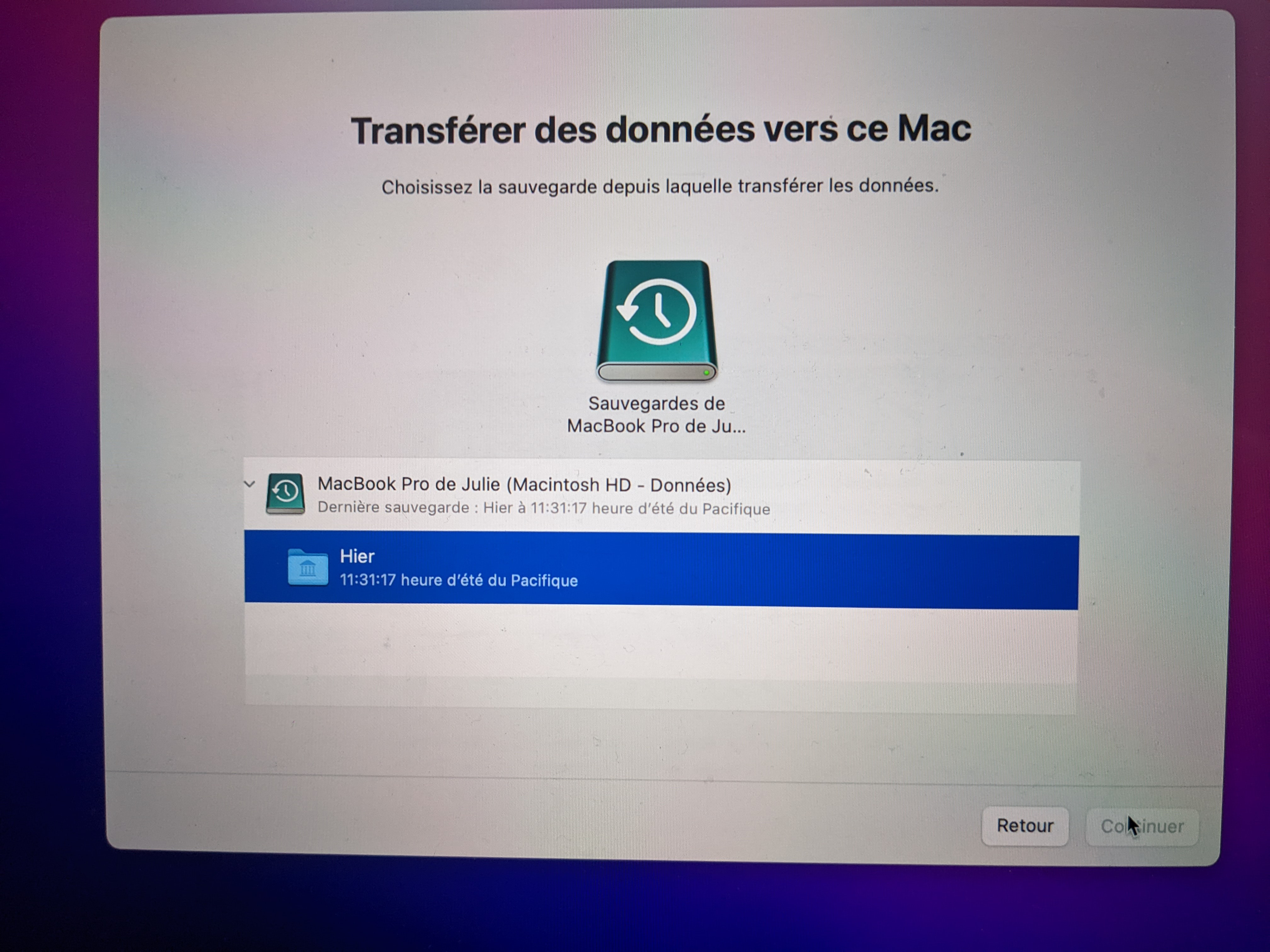 Hi i try to restore a backup but when i clic to continue it grey out and go nothing