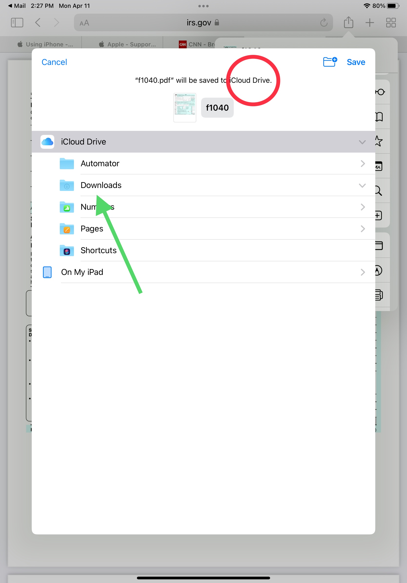 I appreciate all these responses but it would be so much more straightforward for iOS to have a dedicated Download folder, directly available to the user, rather than having to search within in iCloud etc. OS has this facility with a single click.