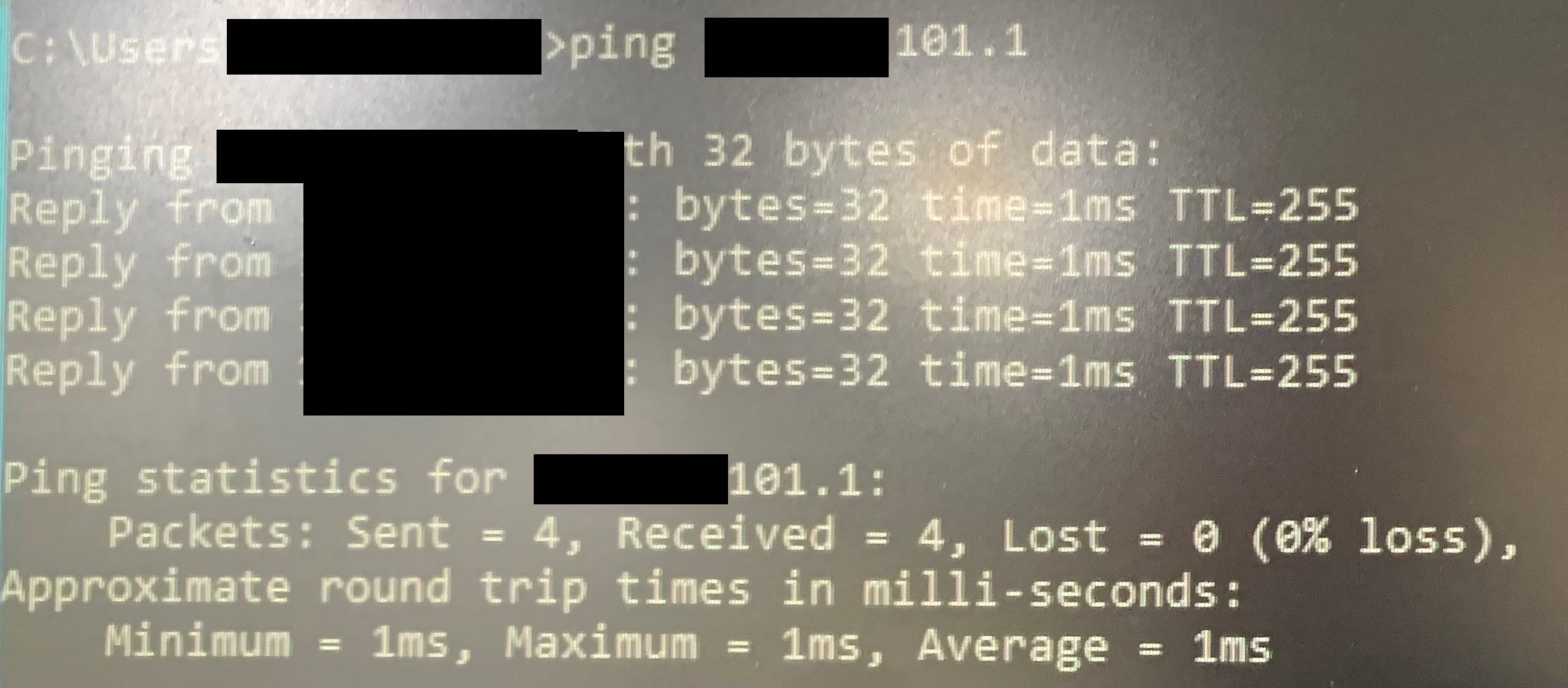 Request timeout for icmp_seq 1