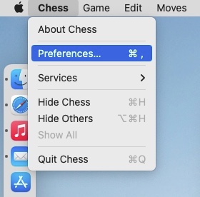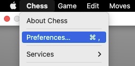With the Chess game open, go to the Menu bar and select Chess > Preferences.