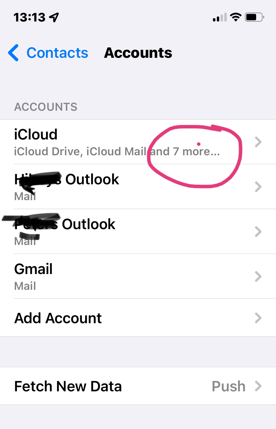 Tap on each account other than iCloud and see if "Contacts" is turned on.