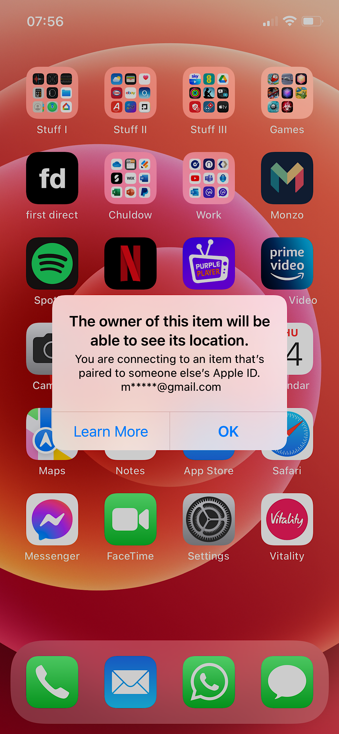 Hi there. My partner bought me some AirPods recently via her own Apple ID account. I paired them to my phone successfully. When I pair them to my phone I get a message telling me that the owner (which is supposed to be me but appears to be my partner, quoting her Apple ID) can see the location if my AirPods.