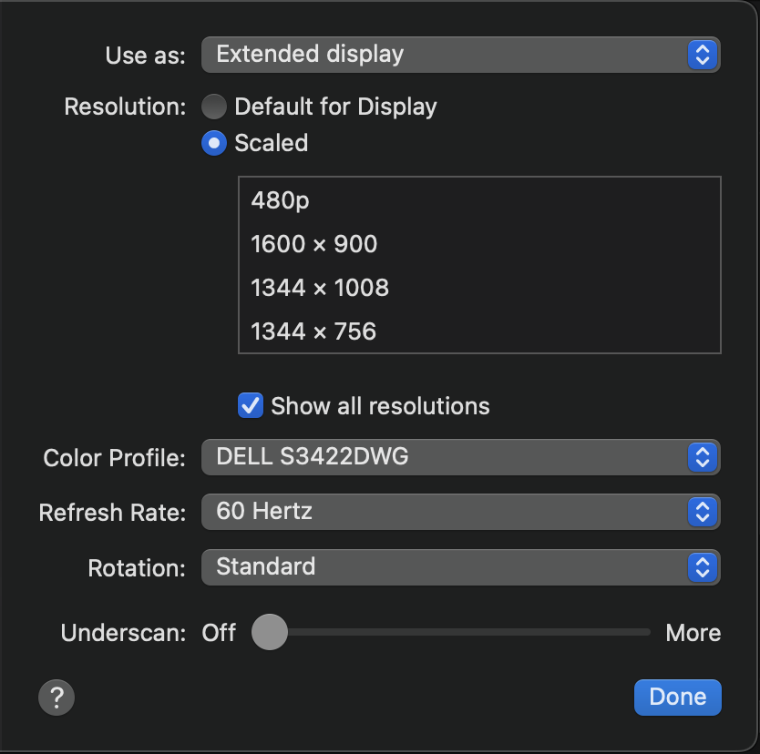 Dell S3422dwg resolution on MacBook Pro not recognizing