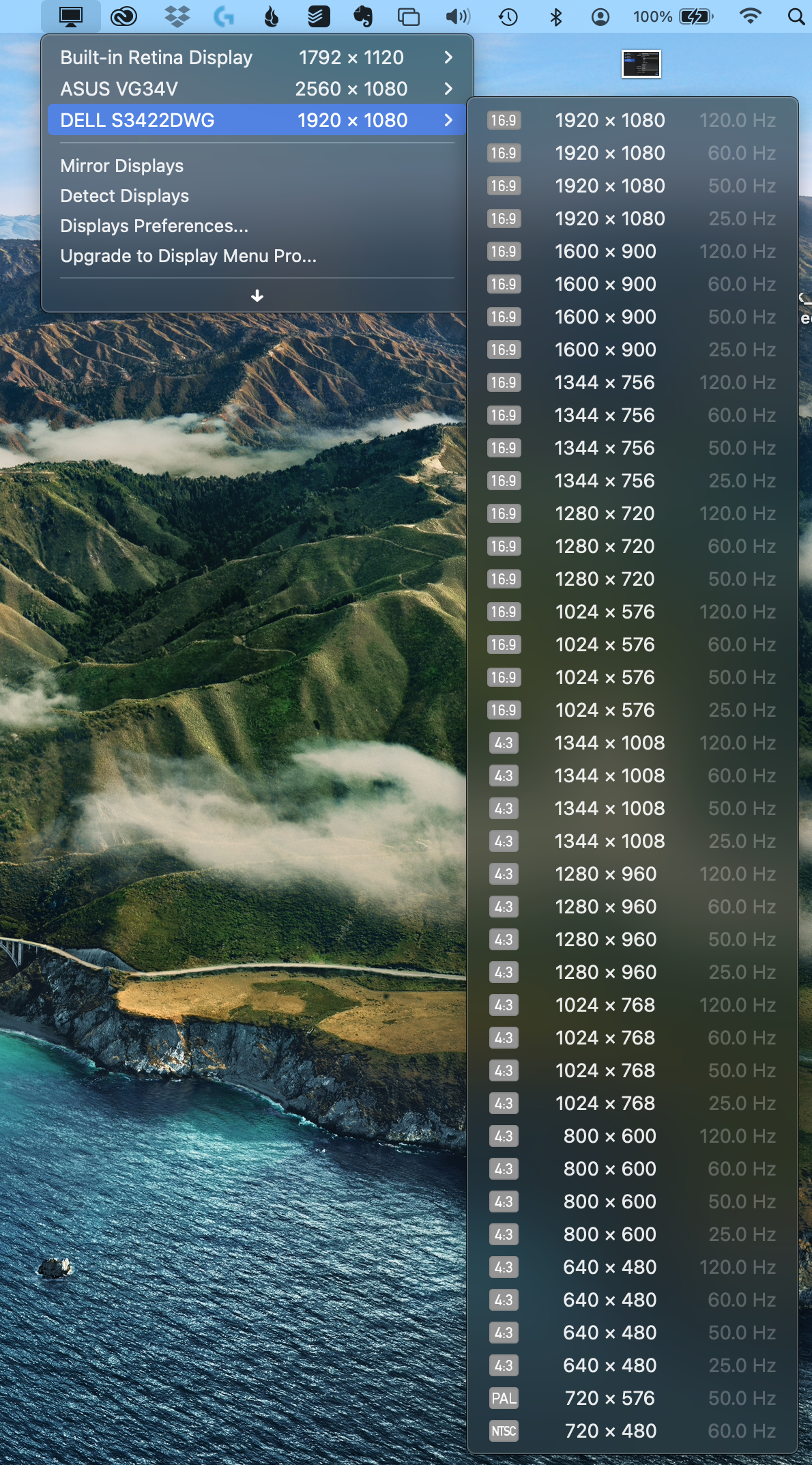 Dell S3422dwg resolution on MacBook Pro not recognizing