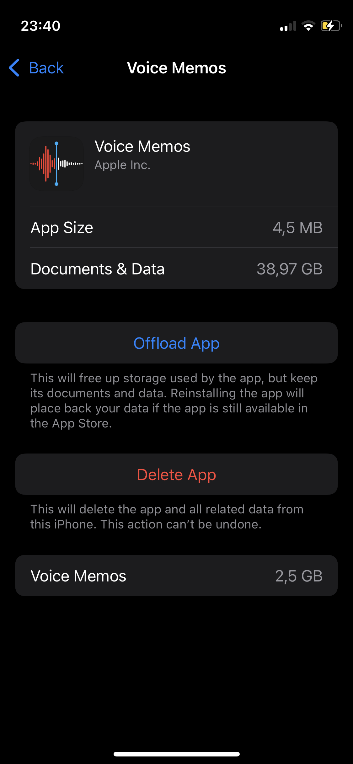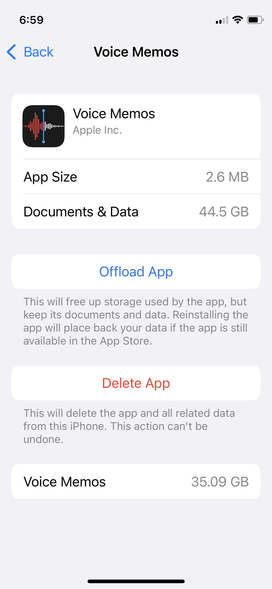 If my voice memos do not persist in the app, where is this storage going? And why am I accountable for audio files I no longer have any access to.