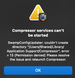 I have gotten this warning. Unable to do even simple jobs with Compressor since Monterey upgrade.