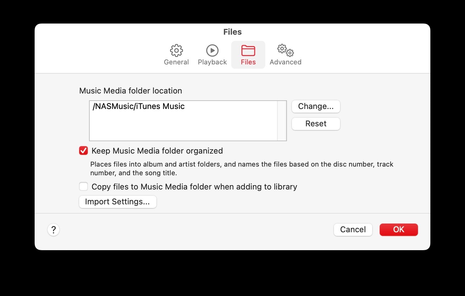 My iTunes Music folder (16,928 items, 260 GB) is on a network-attached storage (NAS) volume that is mounted on my desktop ("/NASMusic/iTunes Music" on iMac, macOS 12.3.1). It worked fine when I still had the iTunes app, and the FInder can access everything in the music folder and other folders on the NAS device. But with macOS Monterey, the Mac Music app doesn't use it, despite setting the path in the Music->Preferences->Files (see attached screenshot).