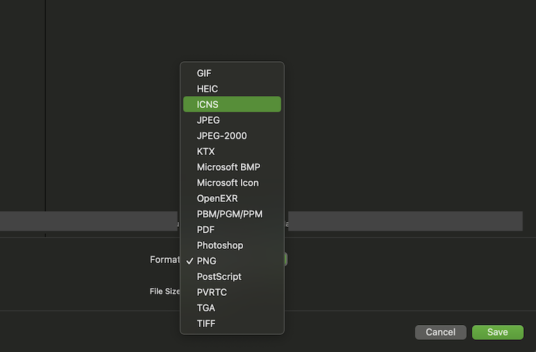 How can I convert PNG file to ICNS? I read that I can do it via Preview but I don't see ICNS format on select format list.