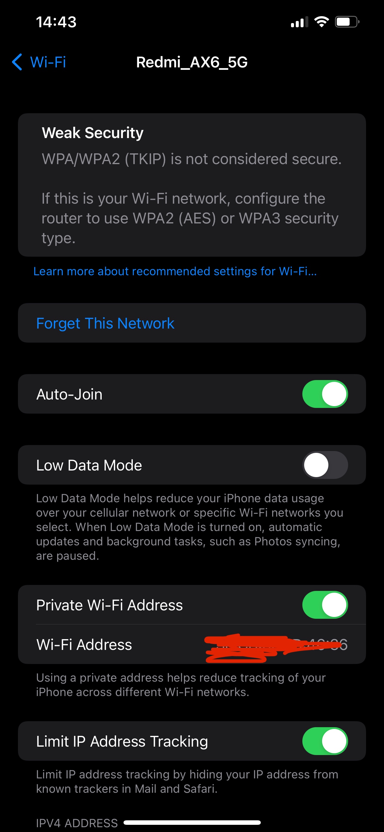 Note also that weak security does not interfere with using Wi-Fi, it is just a warning. Your Wi-Fi should still work normally, and, if it doesn’t, it is not because of the weak security message.